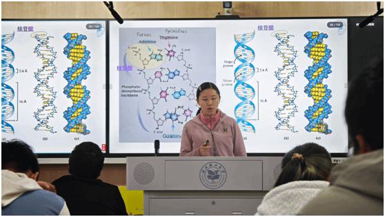 夏老师采用启发式教学法引导学生思考生物工程的应用领域,并结合具体实例介绍了生物学在工程领域的实际应用。此外,她还参照国家“十五五”规划中对生物科技领域的战略布局,鼓励学生思考生物学在推动关键领域创新发展中的重要作用,同时强调科研工作者应秉持严谨求实、勇于创新的精神,致力于解决国家重大需求。