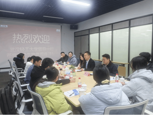 田义超介绍,公司武汉轻工大学校友占比达10%,在关键岗位成为发展中坚。“母校培养筑牢专业基础,让我们快速适应行业需求。”他回顾求学时光并致谢,还分享了公司发展历程、核心业务及未来规划,让师生直观了解生物科技行业前景。 座谈会上,校友情谊成为沟通纽带。各位校友结合工作经历,与师生畅谈职业发展,围绕人才需求标准、岗位能力要求深入交流。双方明确三项合作方向:建立实习实践与毕业论文一体化培养机制;邀请校友专家担任校外导师;搭建常态化人才输送通道,实现供需精准对接。陈新院长表示,将以此次走访深化校企全方位合作,王丽梅副院长及教师代表也与企业方交换了意见。