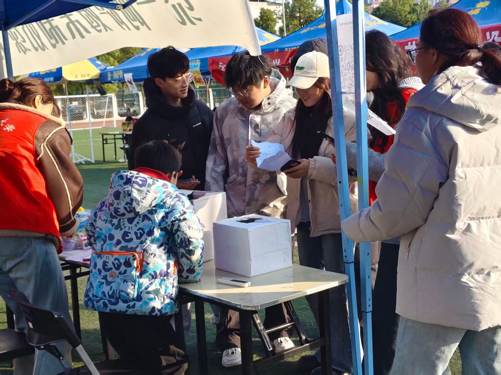 活动现场分为票数获取区、作品展示区和投票区。在票数获取区,志愿者们热情引导同学们参与生物知识问答、投壶游戏等互动环节,欢声笑语中传递着知识与乐趣。作品展示区内,一幅幅用枫叶、银杏、花瓣拼贴而成的作品静静陈列,有的以红黄叶片拼出飘扬的五星红旗,有的以不同叶形勾勒出祖国版图,还有的将落叶重组为奋斗者的身影。值得一提的是,每件作品旁附有创作海报,讲述着背后的巧思与情感,将落叶的物理形态升华为青春志向与家国情怀的生动注脚。